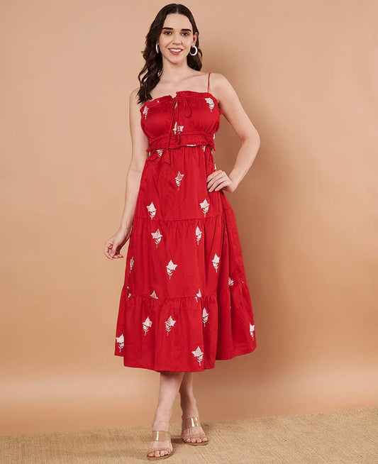 Red Cotton Satin Kurta with Delicate White Embroidery