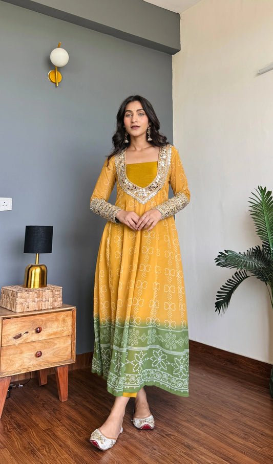 Yellow Georgette Anarkali Suit with Embroidered Dupatta