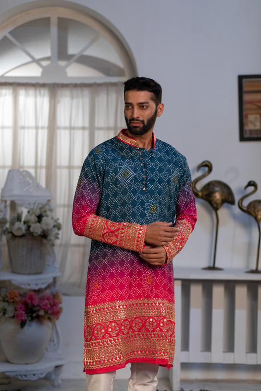 Bhandhani Mirror Kaftan Kurta With Pant