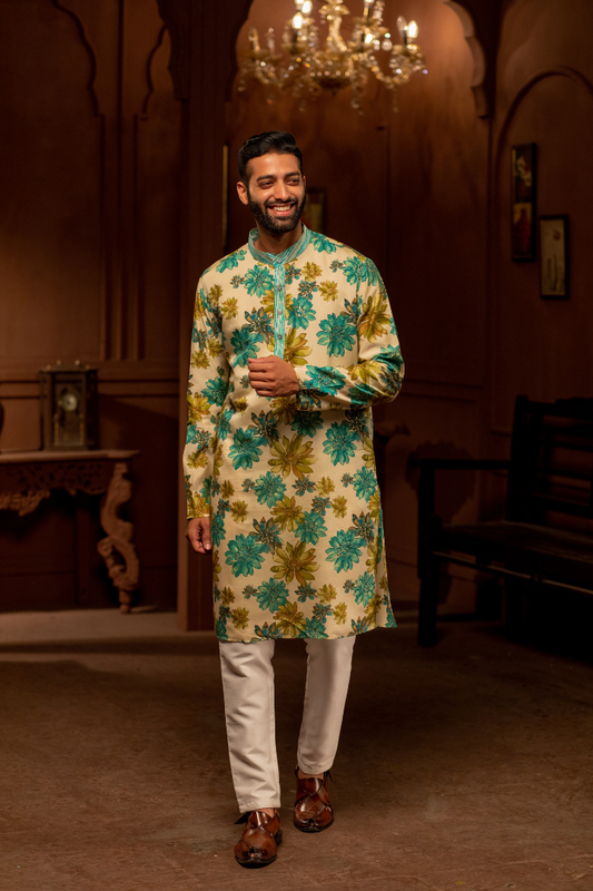 Sold outBeige Cerulean Floral Kurta