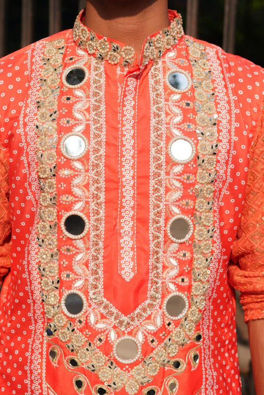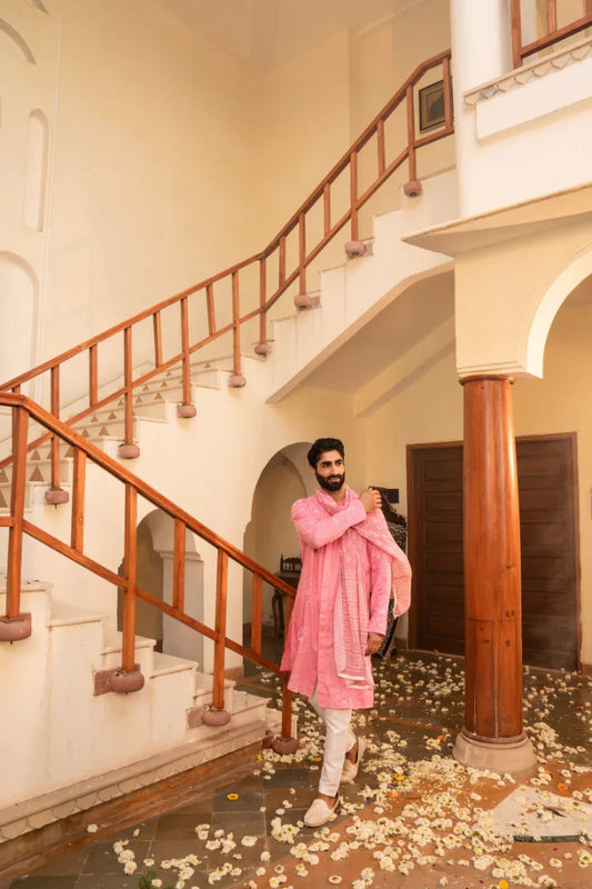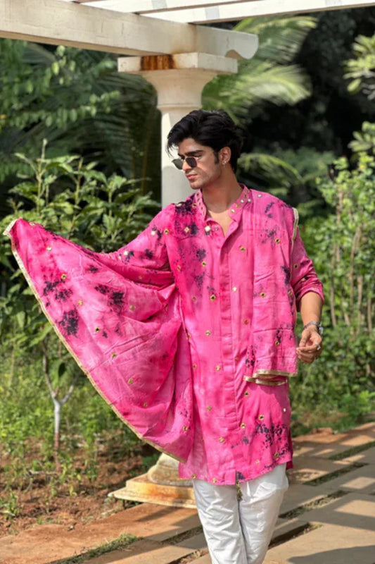 Chic Flamingo Pink Mirror Foil Kurta with dupatta