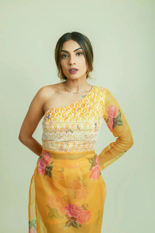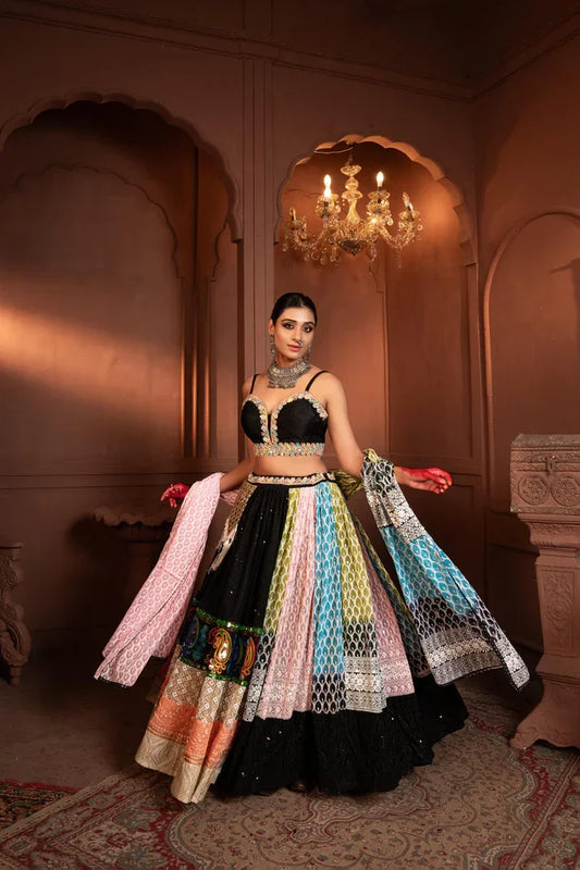 Chocolate Sunflower Lehenga in Silk and Georgette