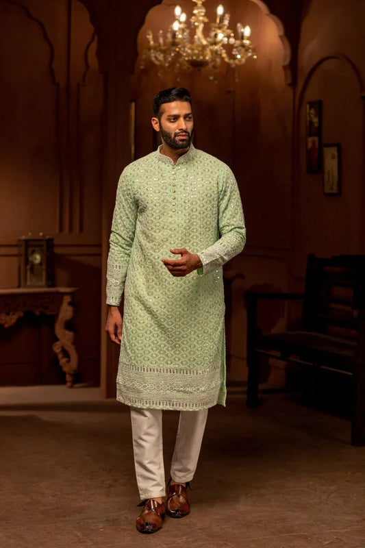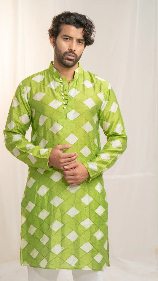 Classic Safed Hara Checks Chanderi Silk Kurta