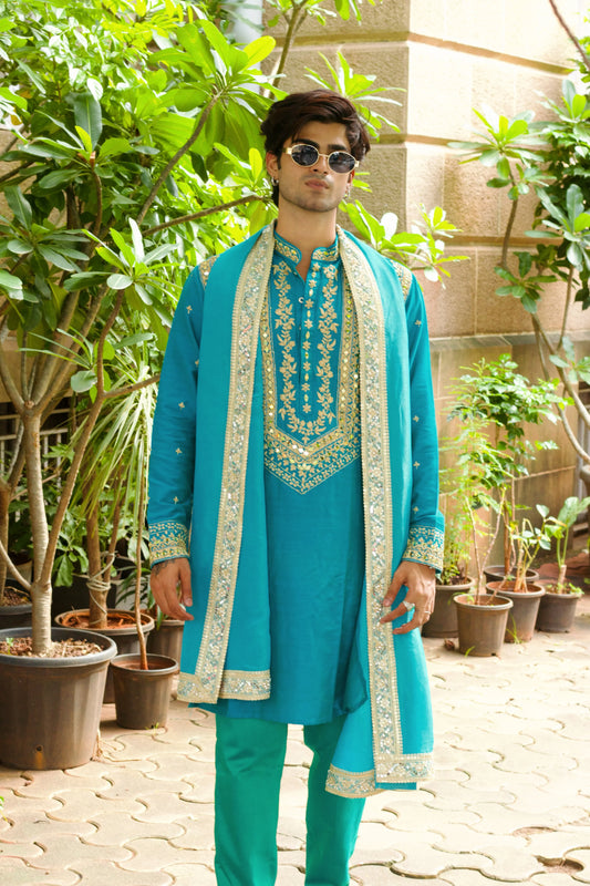 Cadet Blue Zardosi Work Kurta And Dupatta