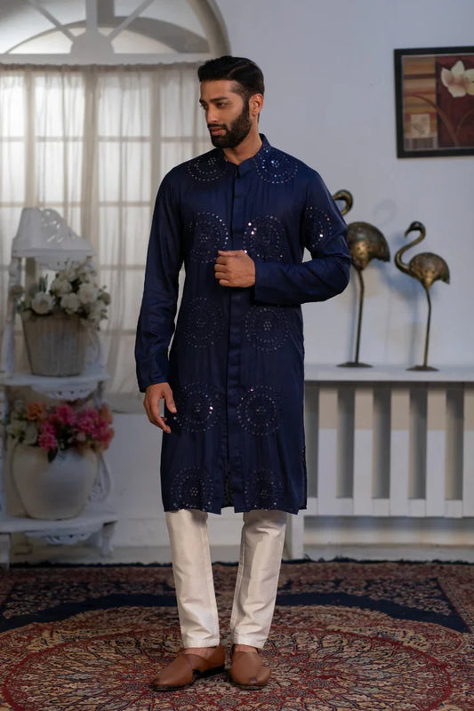 Cotton Silk Embroidered Kurta with Multiprint Basecoat
