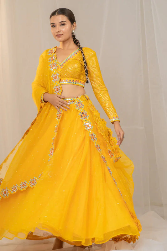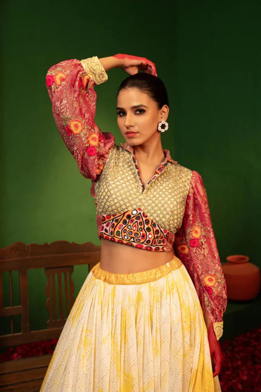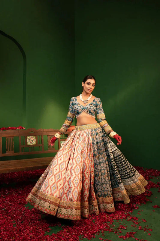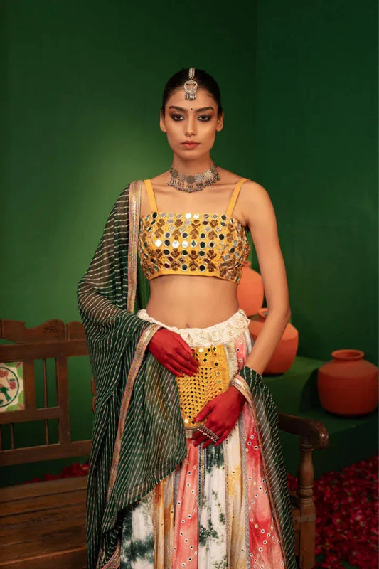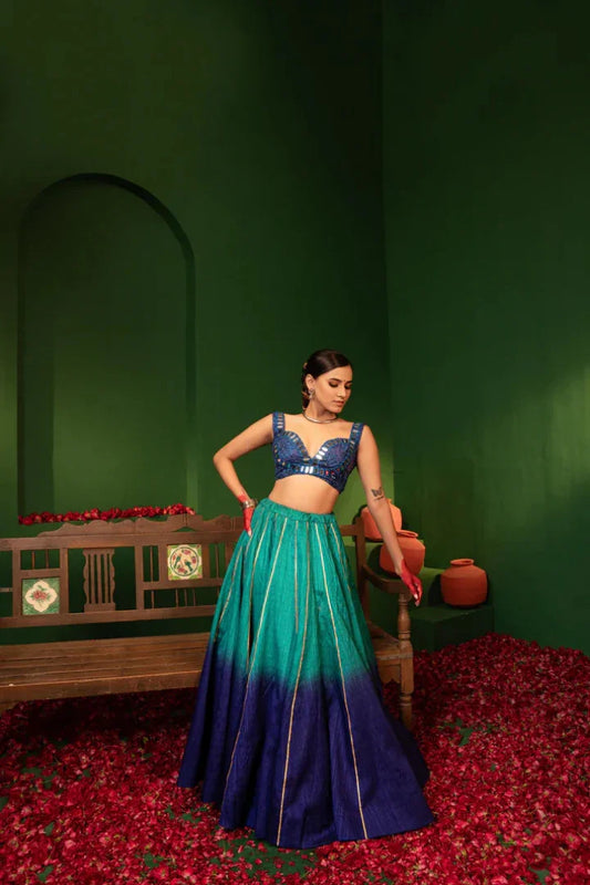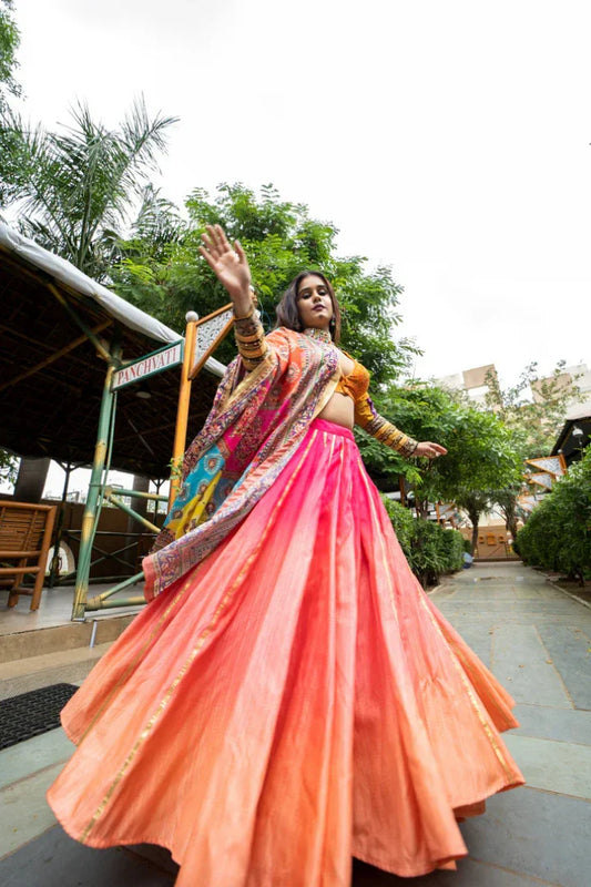 Devi Leela Colour Lehenga with Mirror Work Blouse in Chanderi Silk