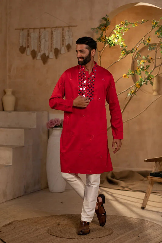 Delightful Strawberry Pink Crystal Mirror Kurta Set