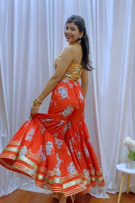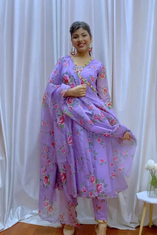 Devi Aaina Printed Lehenga Choli Set in Organza Satin