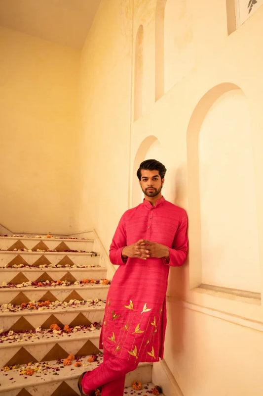 Dazzling Flamingo Pink Mirror Foil Kurta Set