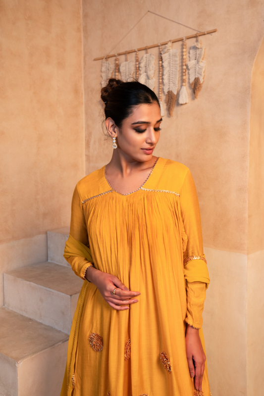 Yellow Georgette Anarkali Suit with Embroidered Dupatta