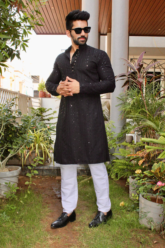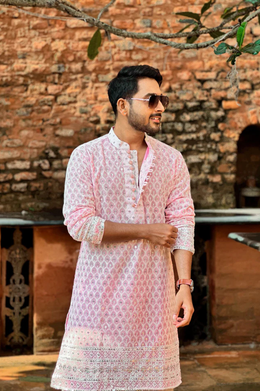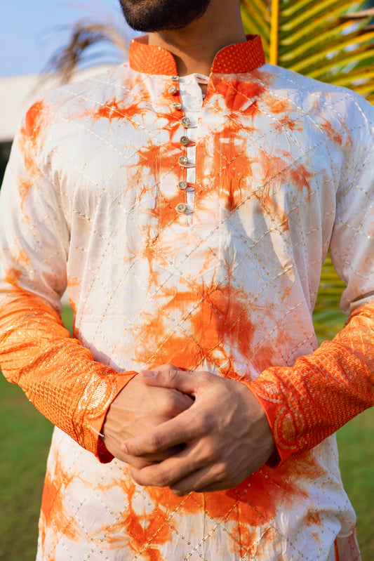 Cotton Silk Embroidered Kurta with Multiprint Basecoat