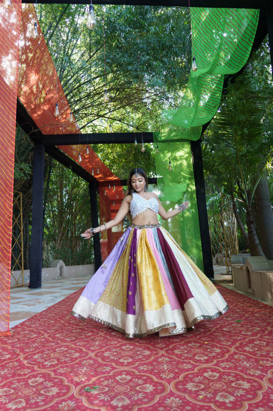 Multicolor Silk Lehenga with Golden Sequin Blouse and Dupatta