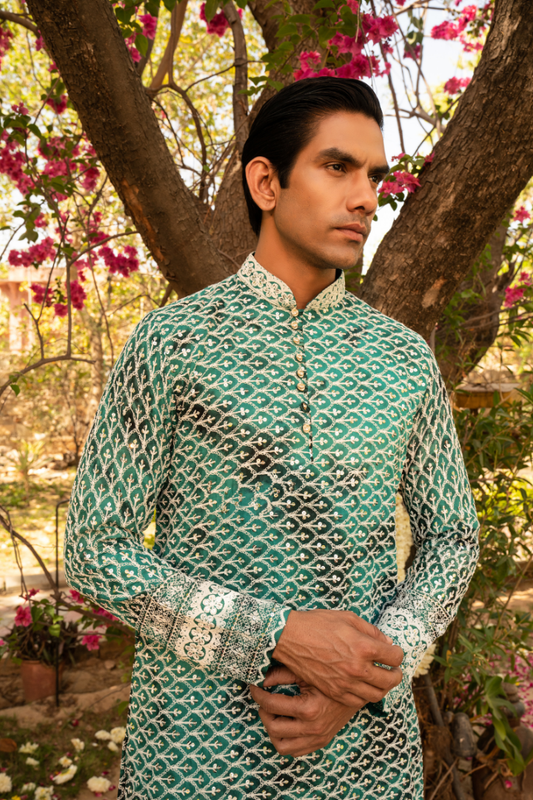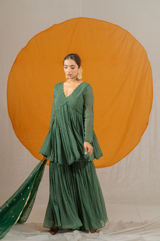 Hare Wala Bhandej Kurta and Sharara with Organza Embroidery Dupatta