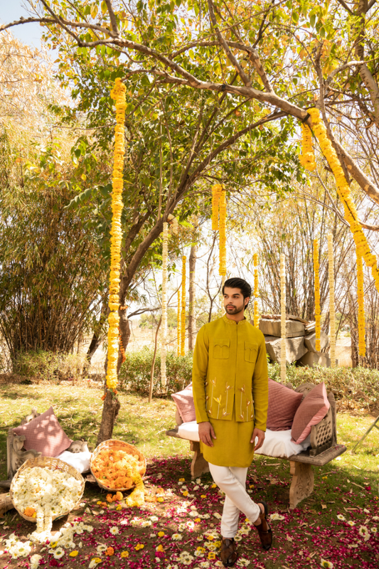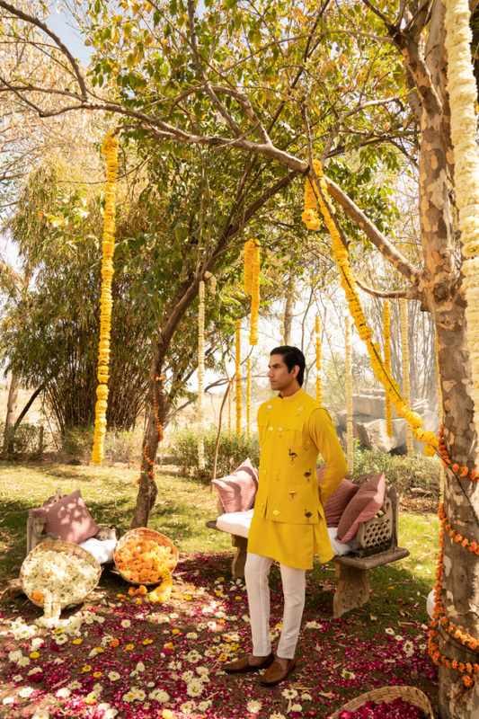 Whimsical Dandelion Pineapple Indowestern Kurta Set