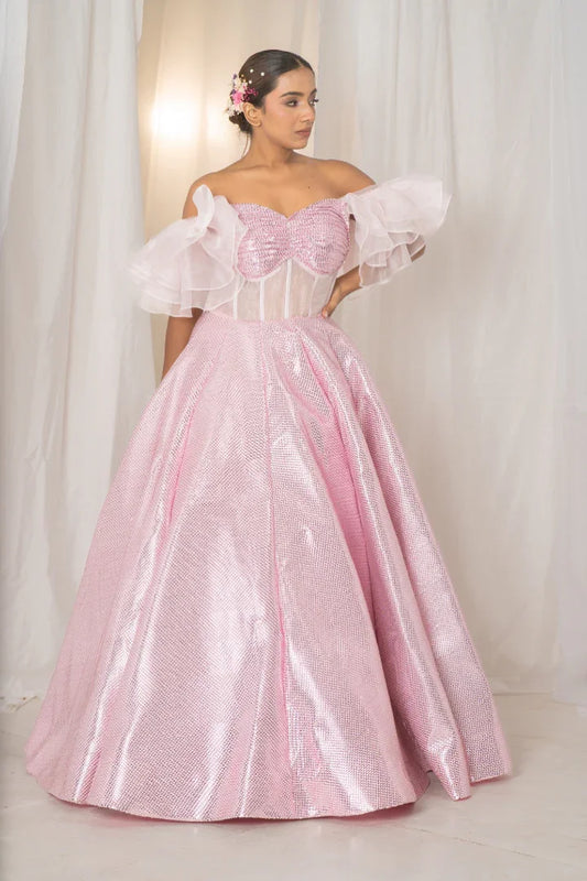 Lilac Organza Lehenga Set with Ruffle Blouse
