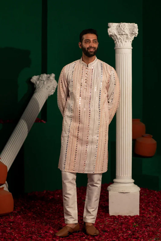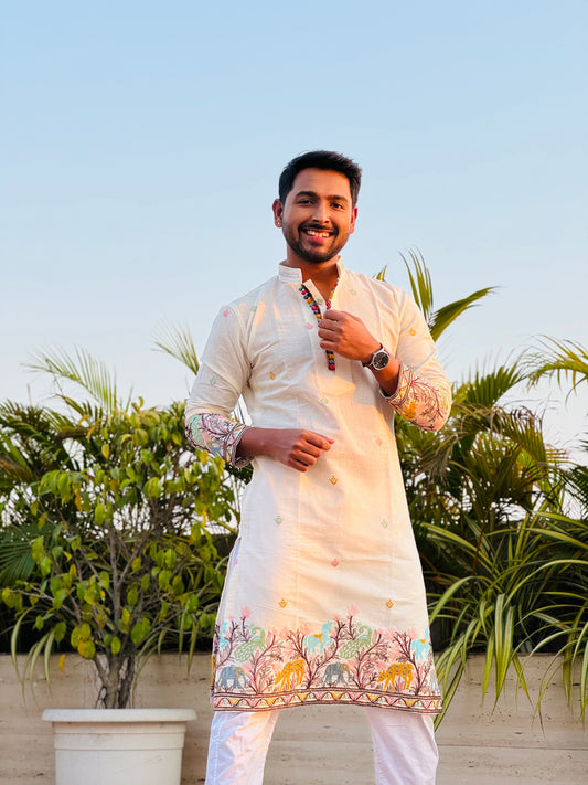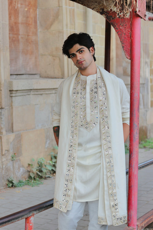 Off White Embriodery Elephant Koti , Kurta And Dupatta