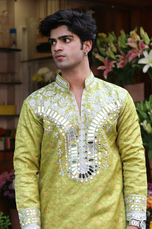 Nicobar Green Cotton Kurta with Shibori Embroidery Kurta