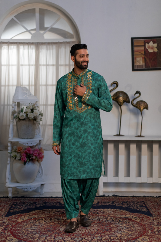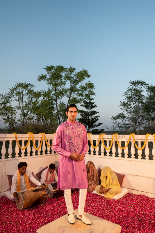Regal Medium Violet Mirror Kurta - Luxurious Allure