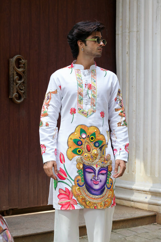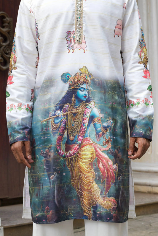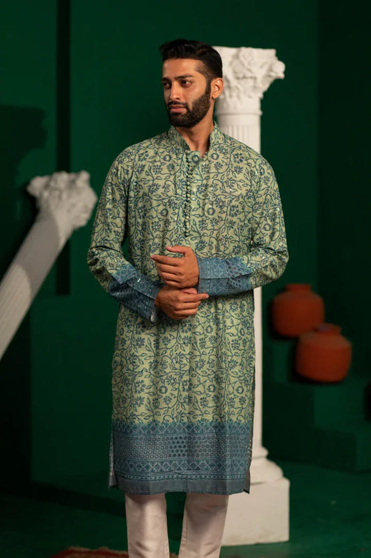Classic Safed Hara Checks Chanderi Silk Kurta
