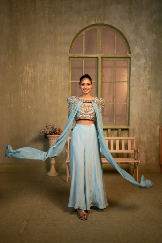 Tammanna - Lush Blue Indowestern Plazo Set