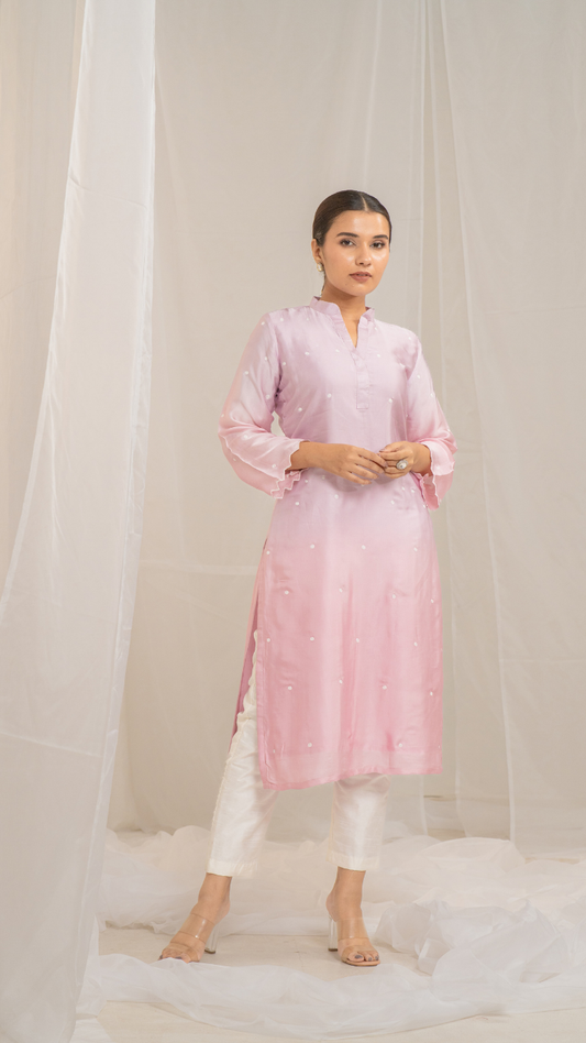 Pink Cotton Modal Satin Haryali Kurta Pant Set