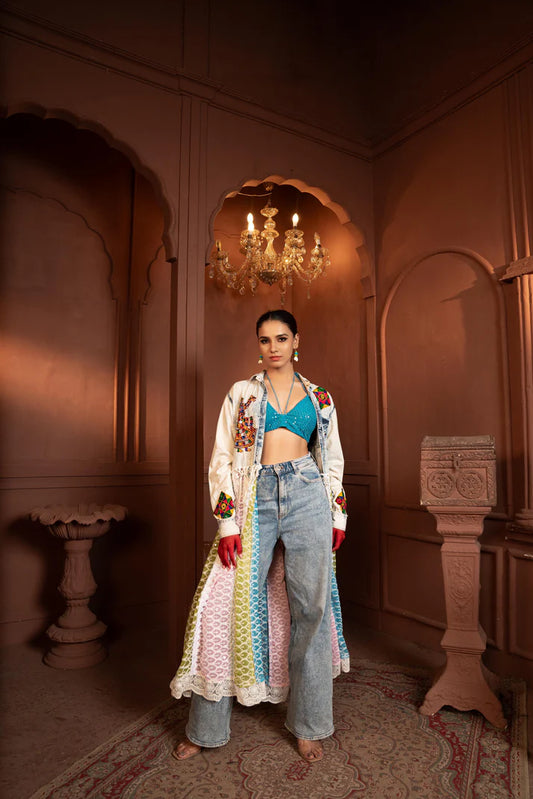Shaded Hara Hara Kurta Set with Silk Pants and Organza Embroidery