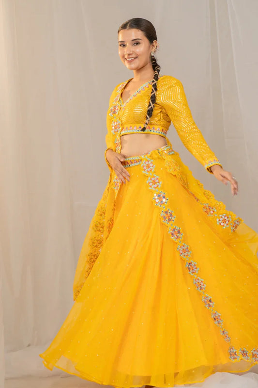 Delightful Organza Lehenga with Mirror Work
