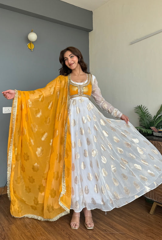 White Coral Gold Embriodery Lehanga Choli with Dupatta