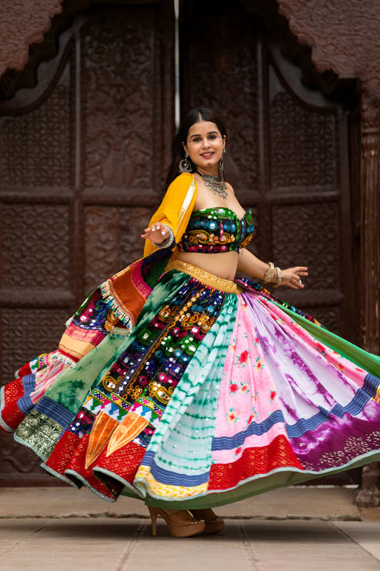 Devi Leela Colour Lehenga with Mirror Work Blouse in Chanderi Silk