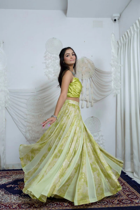 Devi Aaina Printed Lehenga Choli Set in Organza Satin