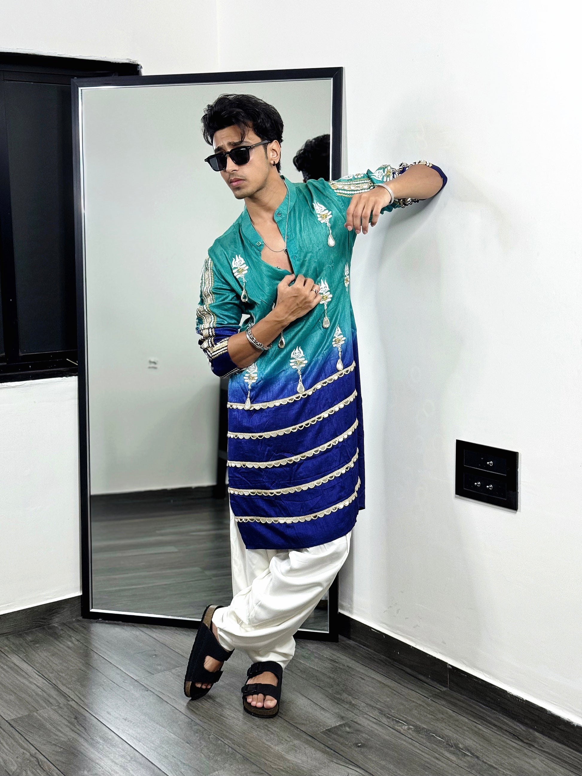 Shaded Hara Hara Kurta Set with Silk Pants and Organza Embroidery