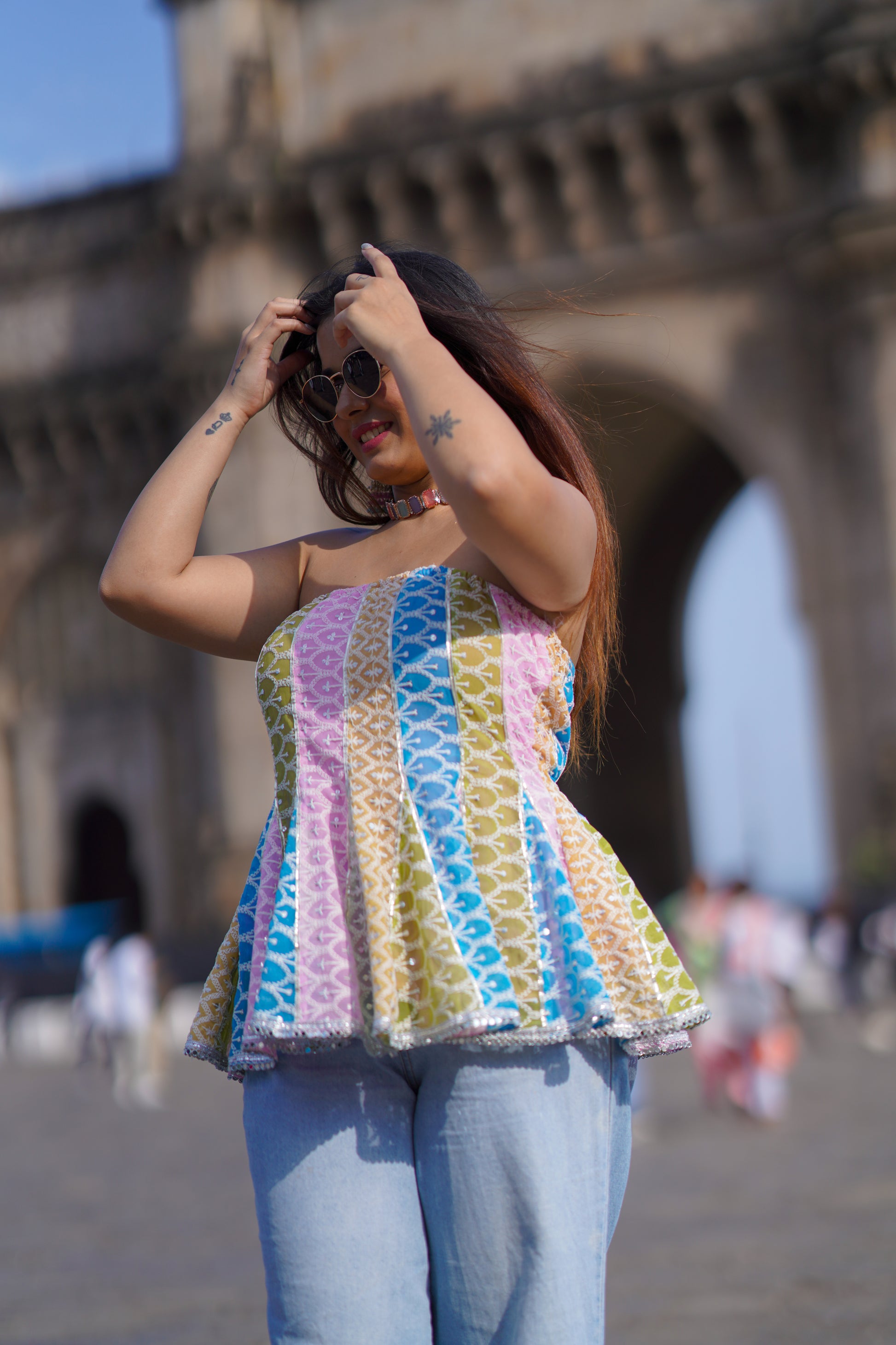 While our artisans and tailors work tirelessly to construct each piece, the ones with beads and sequins are always the most difficult. Even with the utmost care, beads and sequins have a tendency to fall off the fabric. A few beads or sequins missing have no effect on the overall appearance of the outfit and are unnoticeable even under close inspection. So don't be afraid to shine!