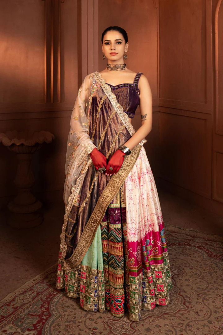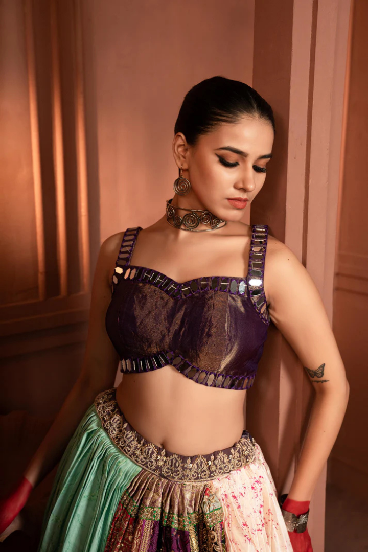 Devi Purple Coneflower Mirror Lehenga in Organza and Silk