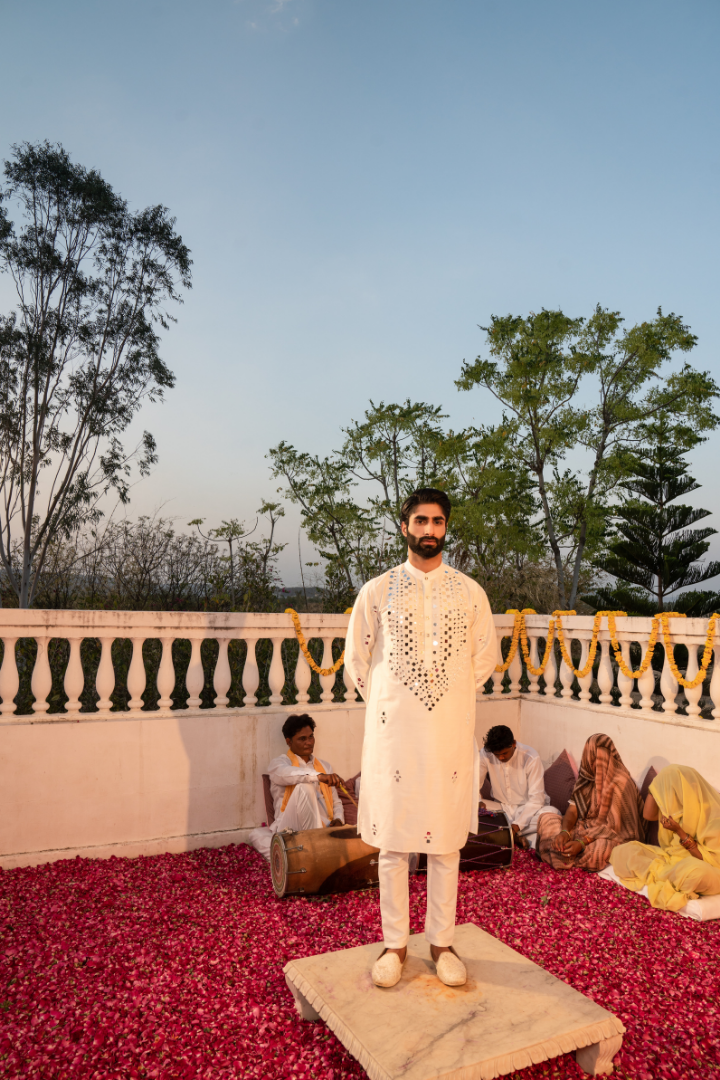 Embody the timeless elegance of the Taj Mahal with this pristine white kurta featuring exquisite mirror work. The pure white hue represents the marble monument, while the shimmering mirrors echo its mesmerizing beauty.