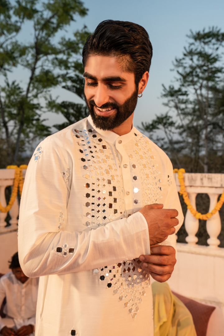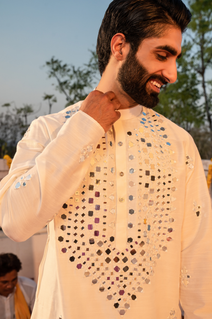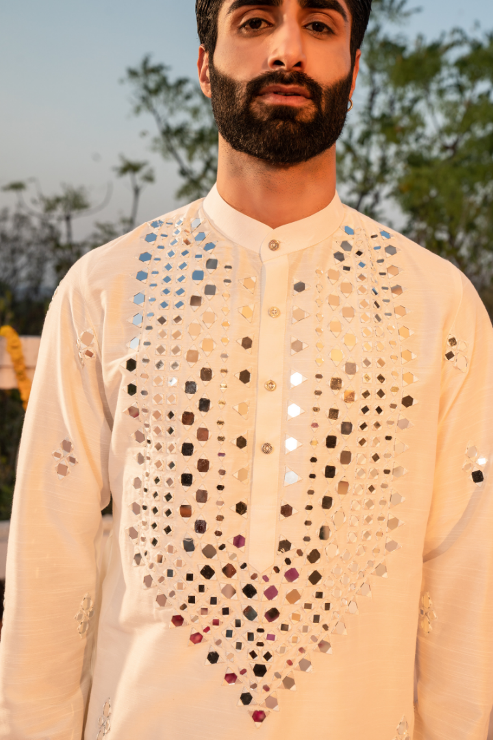 Ethereal Taj Mahal White Mirror Kurta