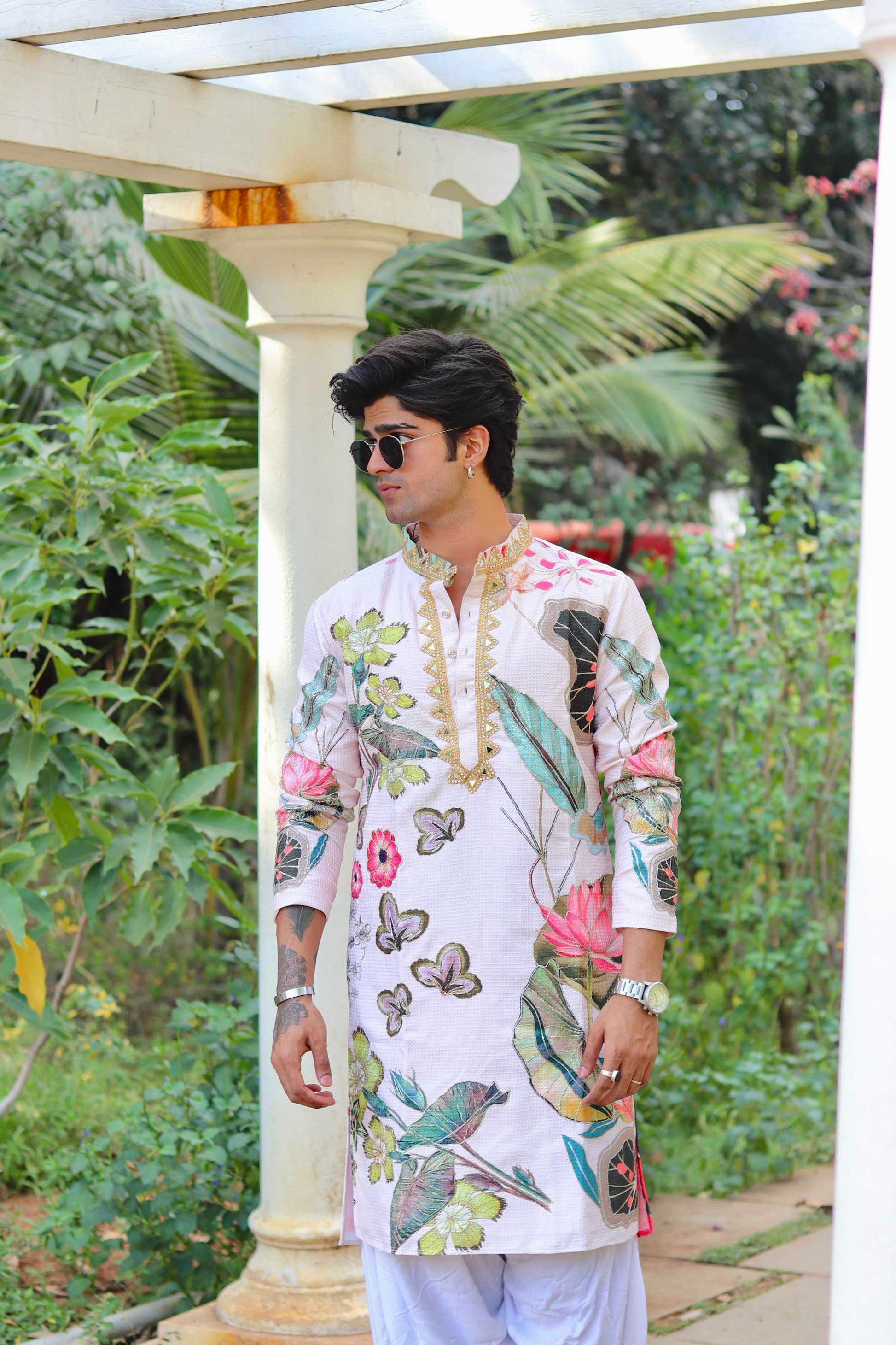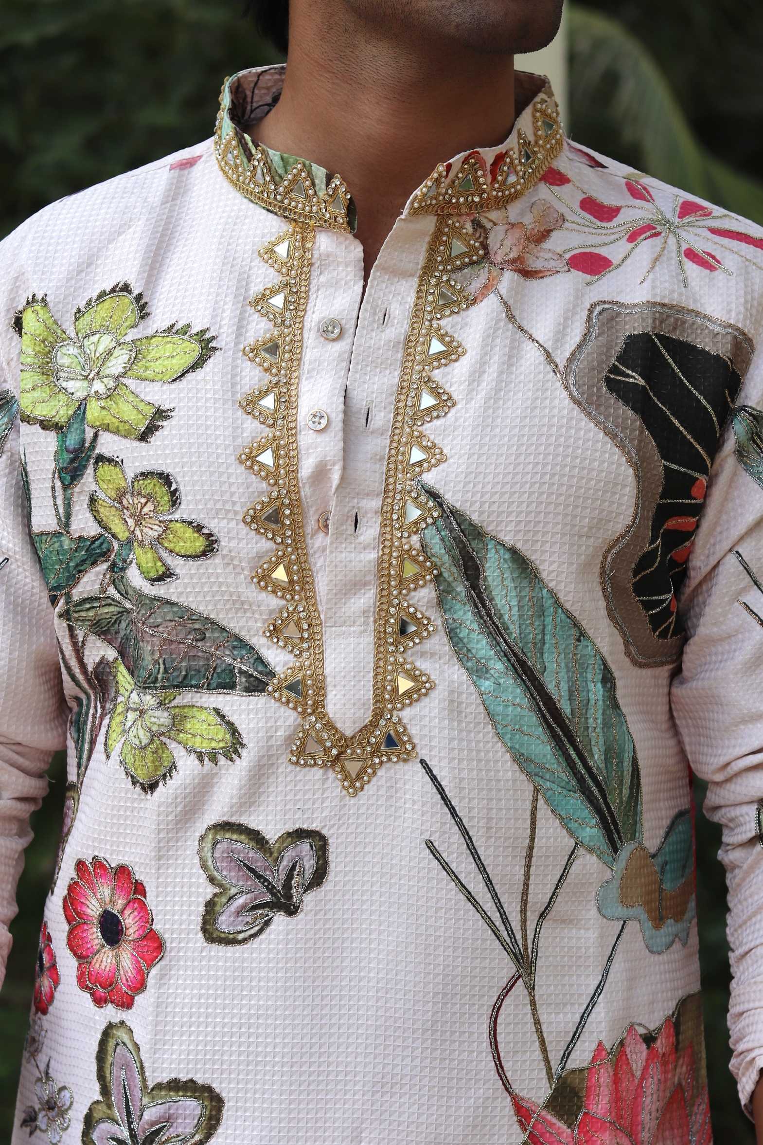 While our artisans and tailors work tirelessly to construct each piece, the ones with beads and sequins are always the most difficult. Even with the utmost care, beads and sequins have a tendency to fall off the fabric. A few beads or sequins missing have no effect on the overall appearance of the outfit and are unnoticeable even under close inspection. So don't be afraid to shine!