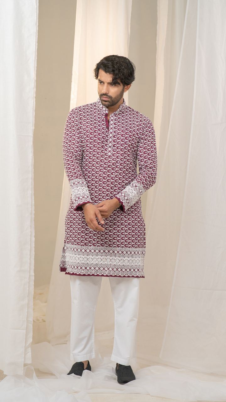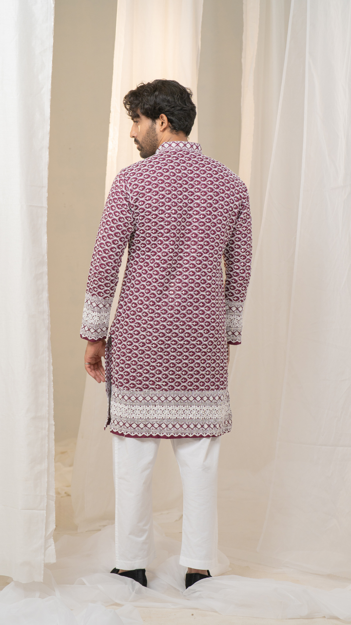 - Intricate Chand Sequence Detailing: The delicate Chand sequence work enhances the kurta with a subtle sparkle, creating a mesmerizing effect.