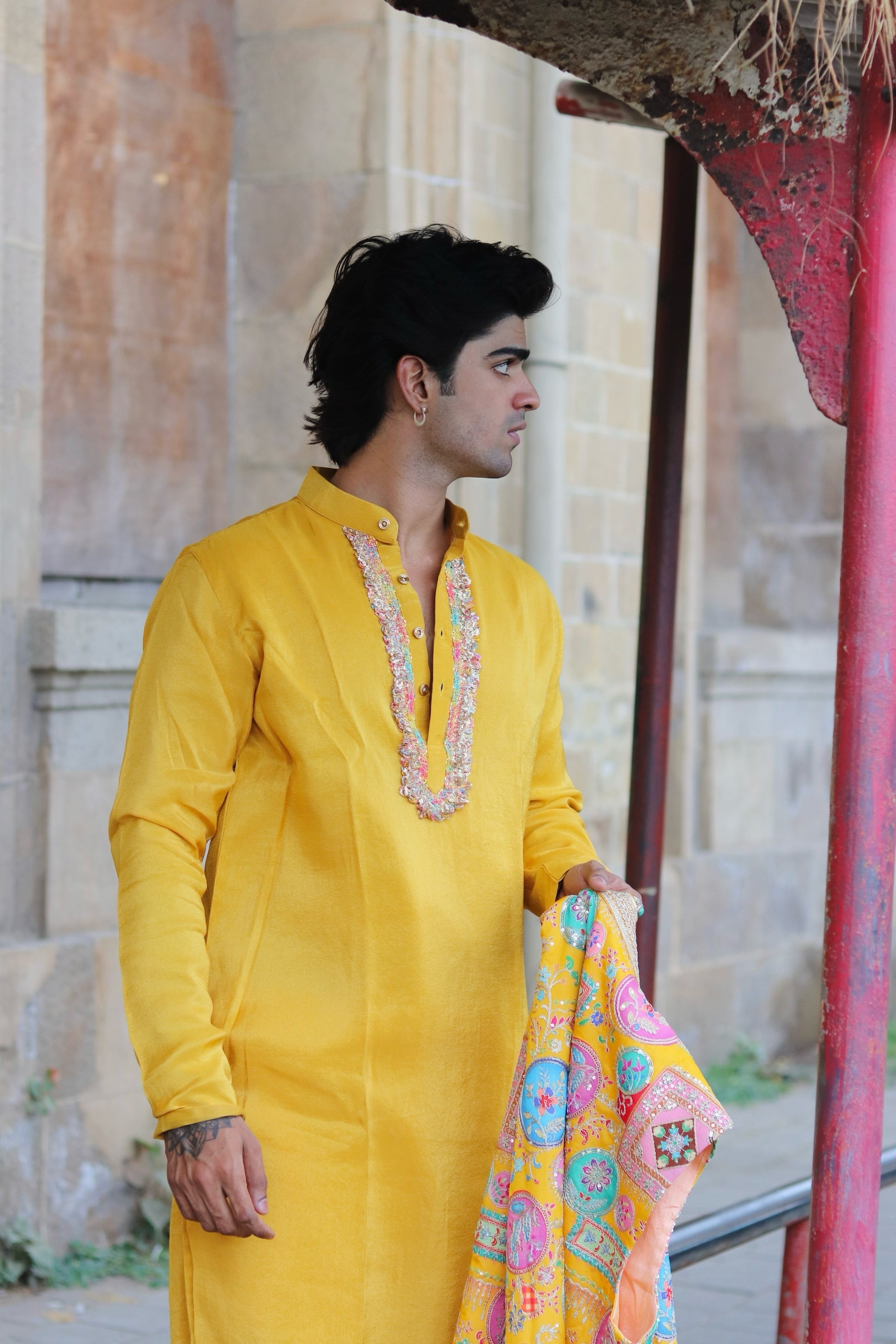 While our artisans and tailors work tirelessly to construct each piece, the ones with beads and sequins are always the most difficult. Even with the utmost care, beads and sequins have a tendency to fall off the fabric. A few beads or sequins missing have no effect on the overall appearance of the outfit and are unnoticeable even under close inspection. So don't be afraid to shine!