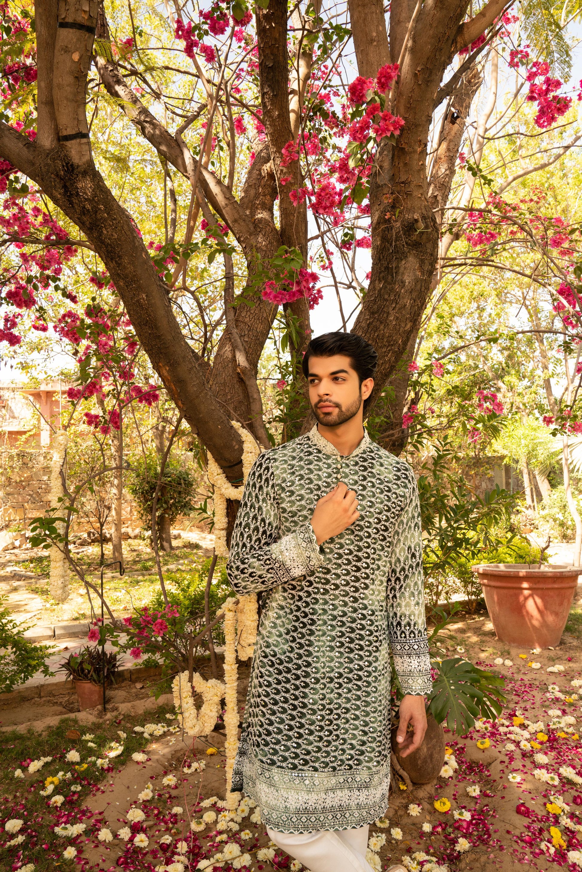 While our artisans and tailors work tirelessly to construct each piece, the ones with beads and sequins are always the most difficult. Even with the utmost care, beads and sequins have a tendency to fall off the fabric. A few beads or sequins missing have no effect on the overall appearance of the outfit and are unnoticeable even under close inspection. So don't be afraid to shine!