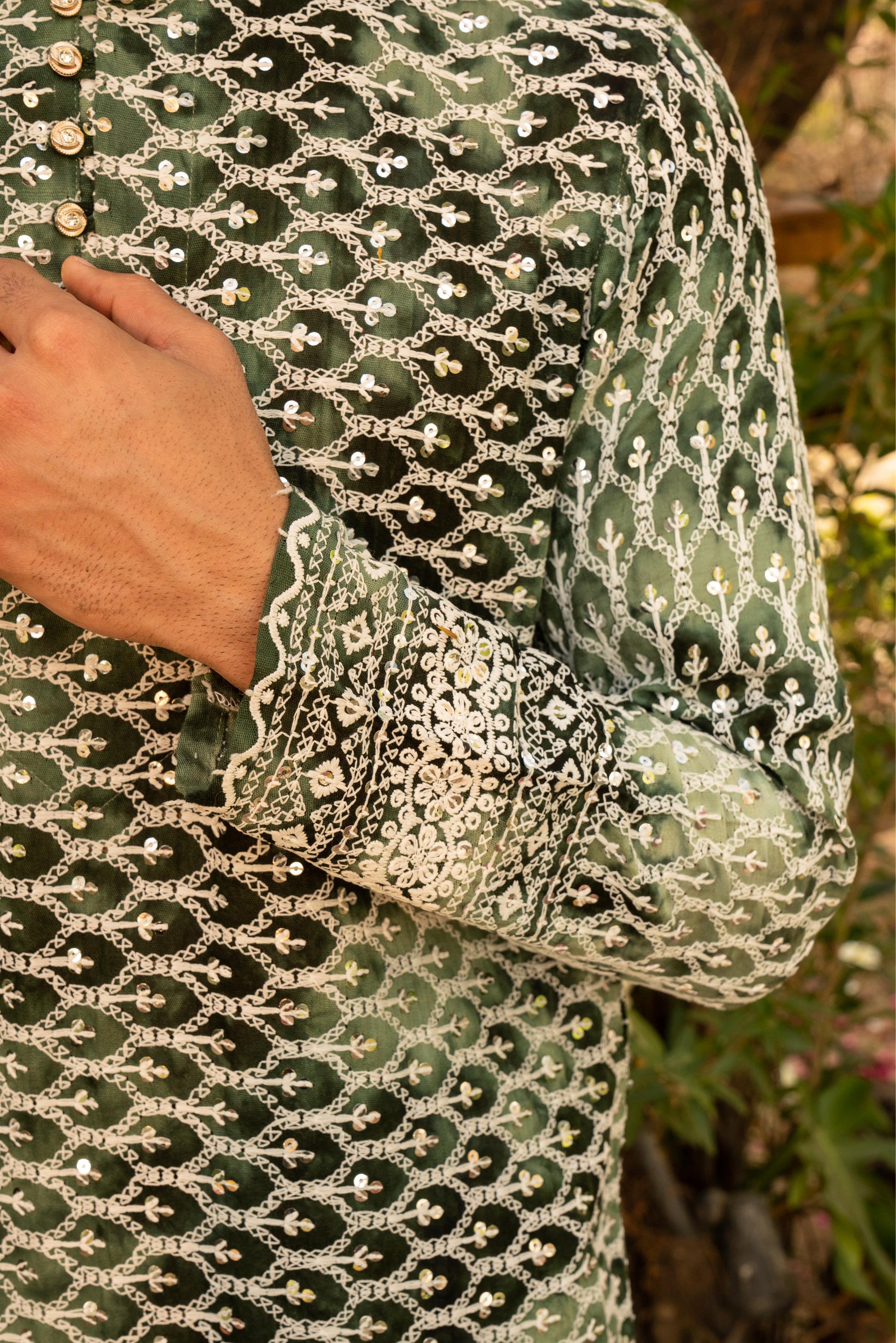 This beautiful Green kurta combines classic style with detailed Shibori-inspired embroidery. Made from soft cotton, it's both comfortable and eye-catching – perfect for those who appreciate unique details in their everyday wear.