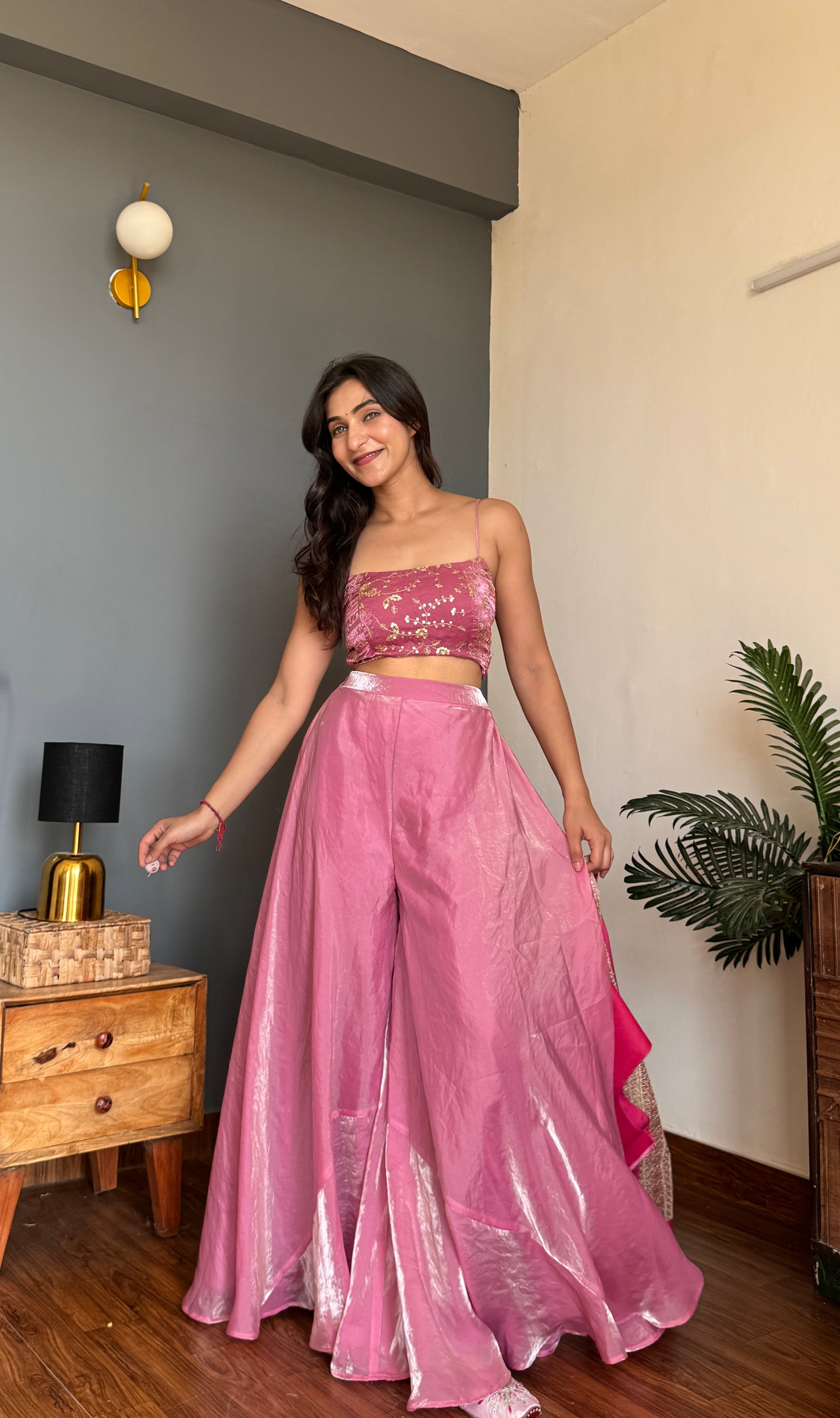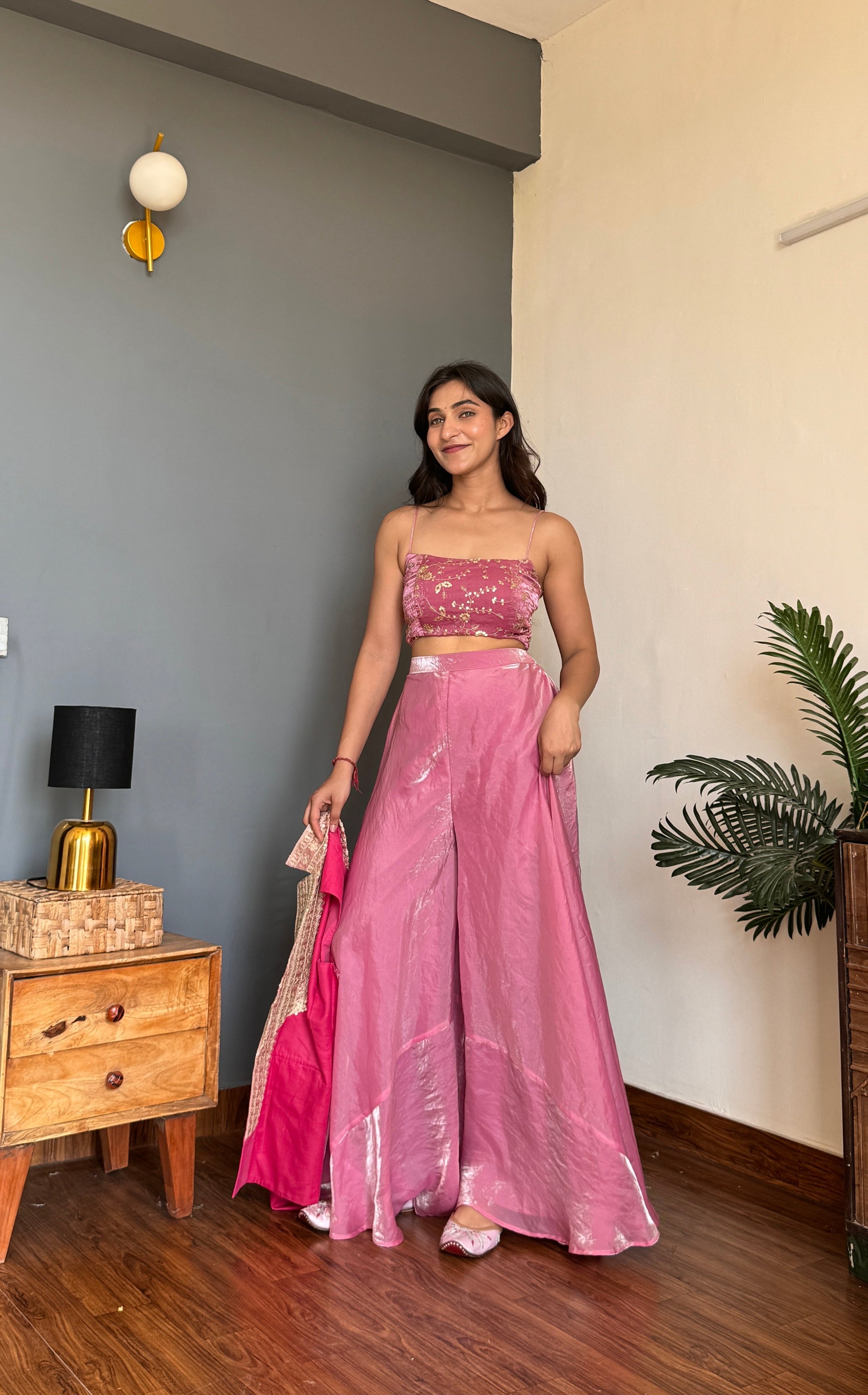 Kaleji Rose Gold Silk Kurta Set with Organza Lehenga and Dupatta