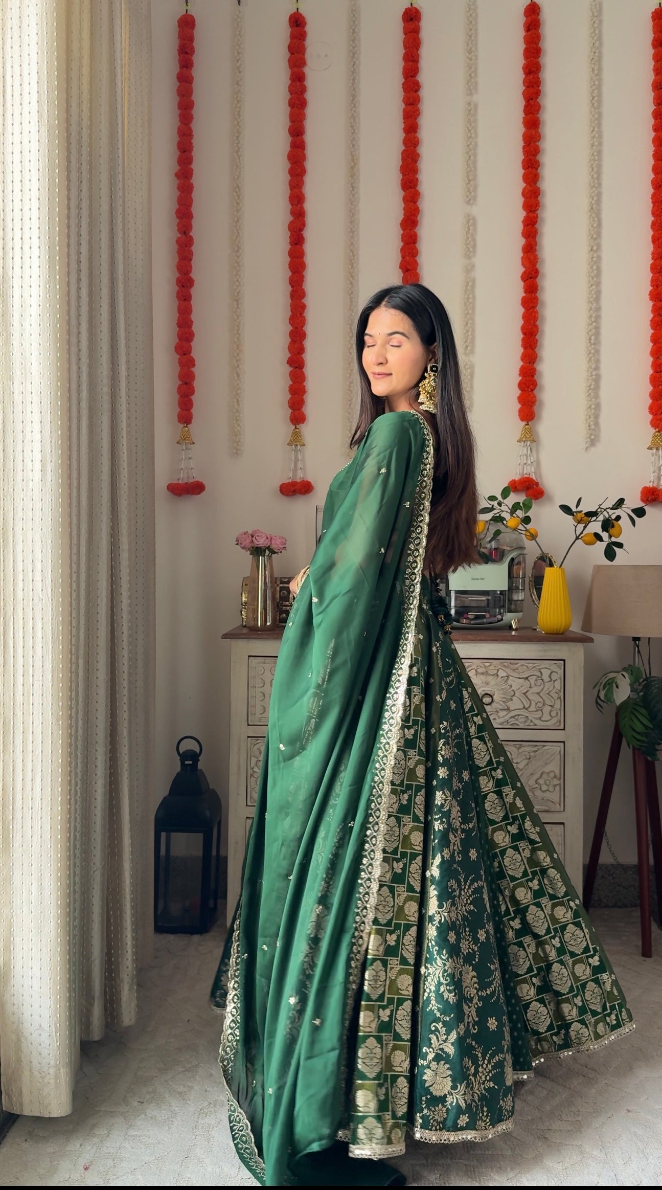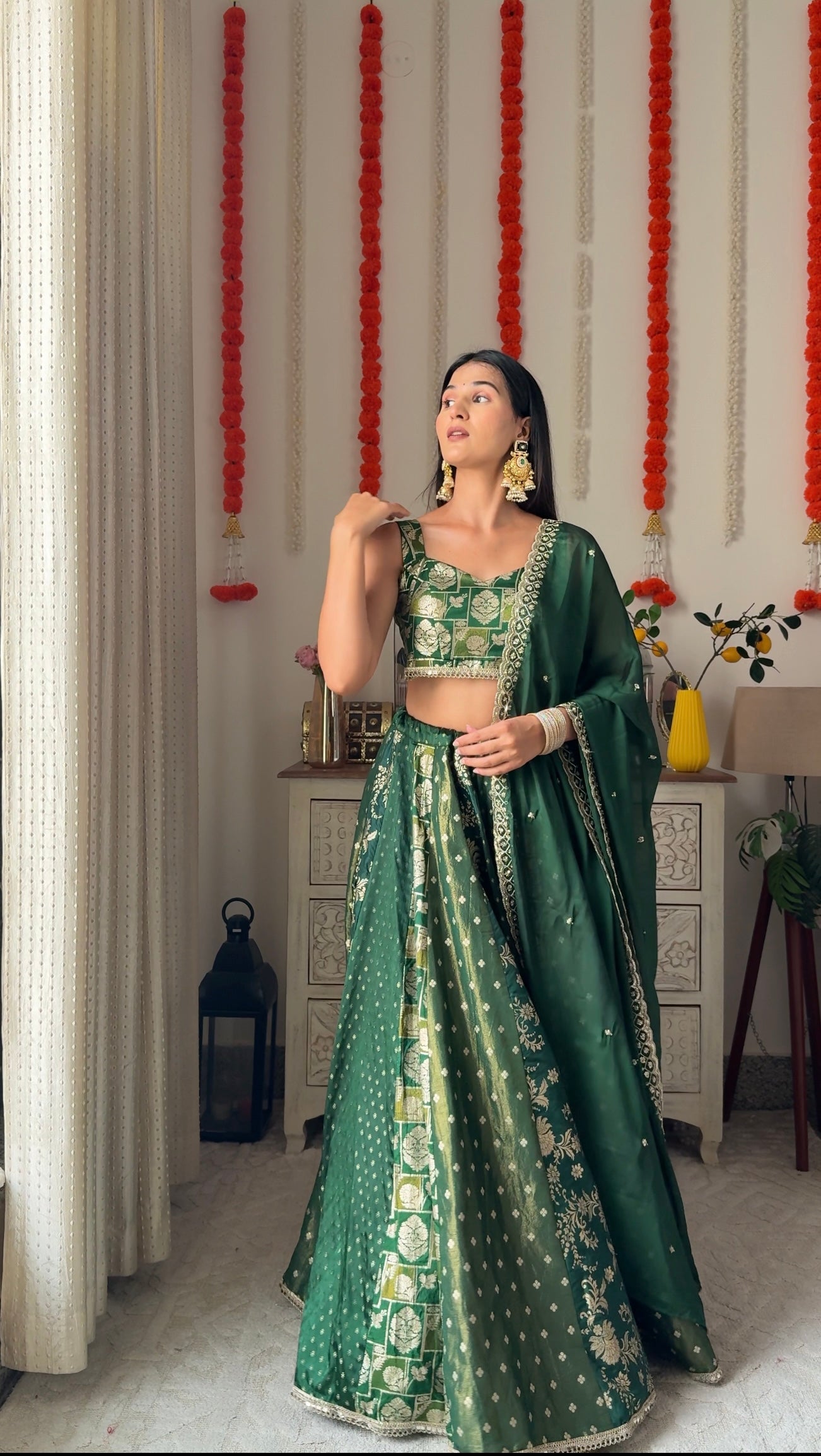 Kaleji Rose Gold Silk Kurta Set with Organza Lehenga and Dupatta