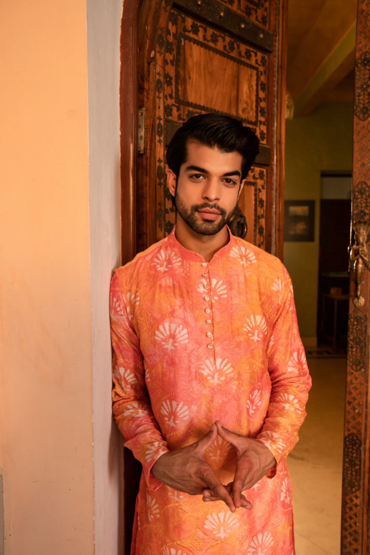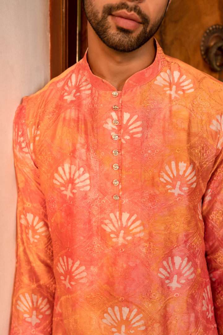 Add a pop of fun to your wardrobe with this vibrant jellybean batik kurta. The playful mix of colors resembles a handful of jellybeans, while the traditional batik technique adds depth and artisanal appeal to the design.