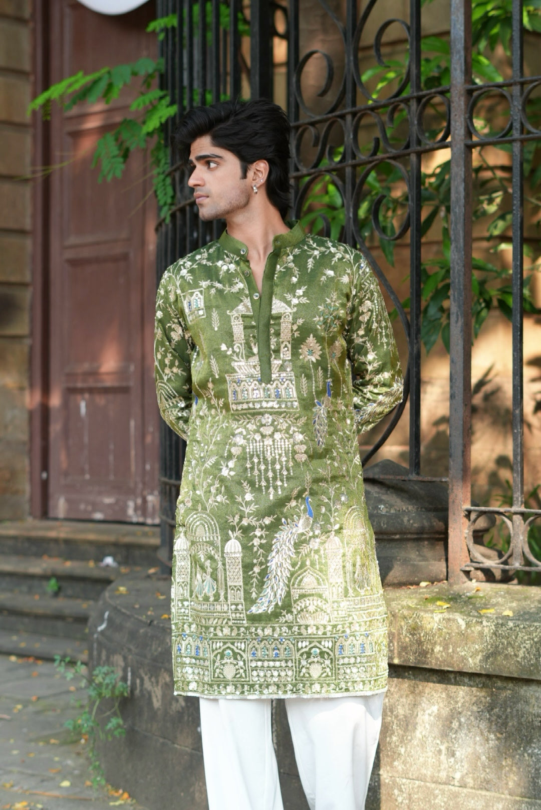Raj Mahal Green Legacy Mens Kurta from Kzari blends royal elegance with modern comfort. Crafted in premium shimmer tissue fabric, it reflects a soft festive glow. Ideal for weddings and celebrations, this kurta offers a refined fit, rich color, and timeless appeal for graceful traditional styling and festive occasions everywhere.