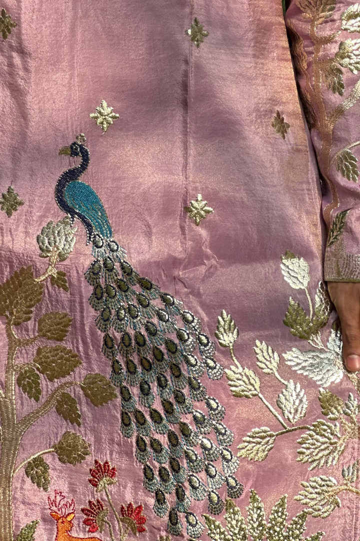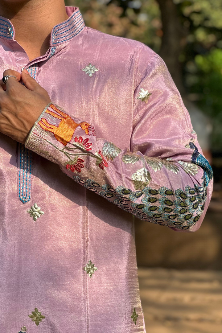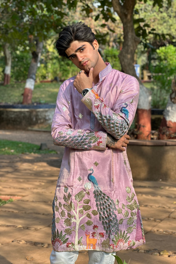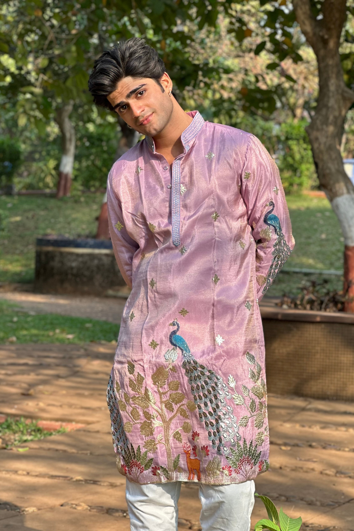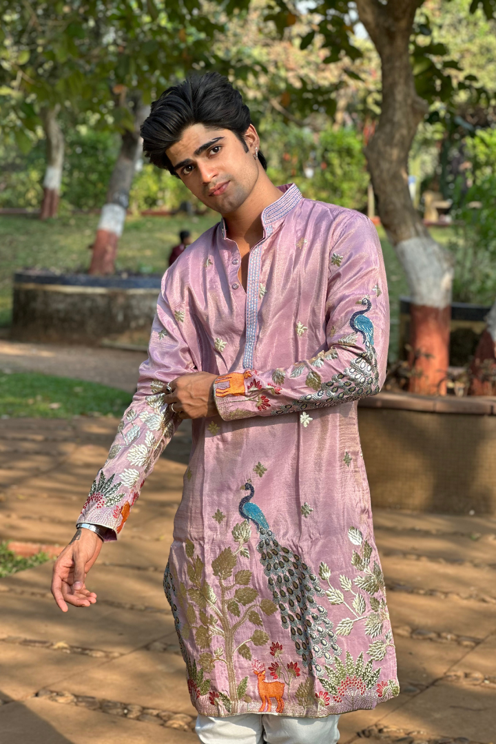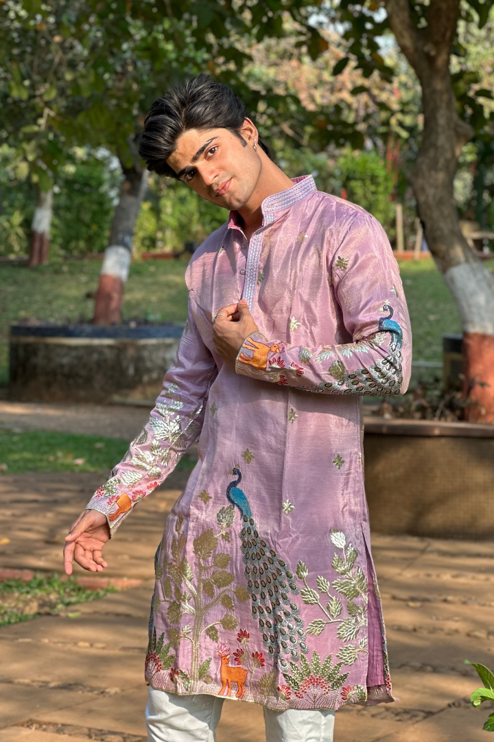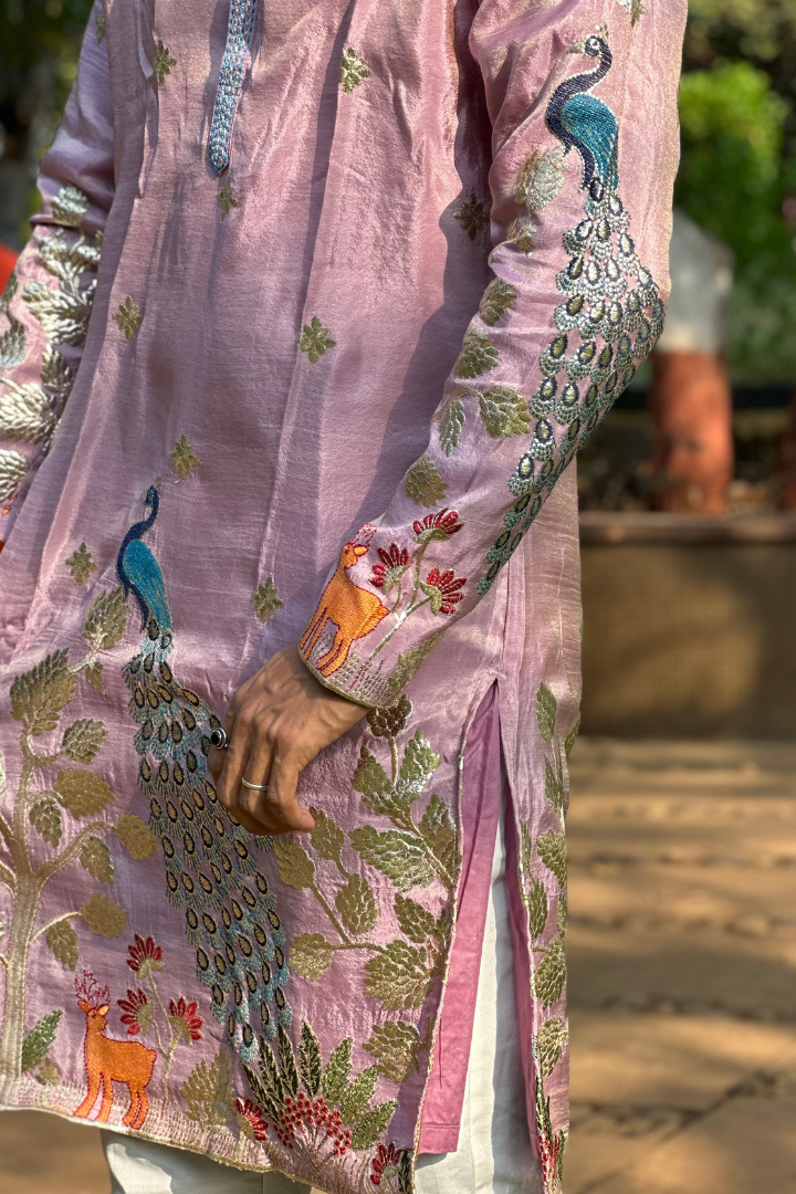 Rose Purple Kurta with Elegant Deer and Peacock Motifs