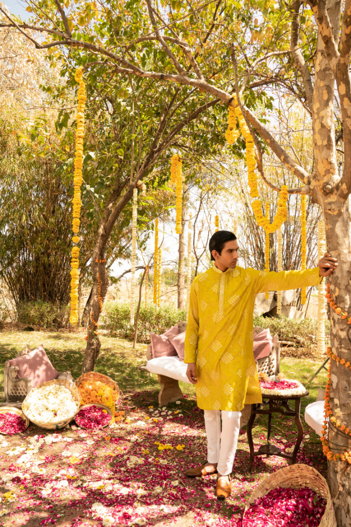 Hand-printed items contain slight defects that distinguish them apart and make them one-of-a-kind. The traditional dyeing and printing processes may cause little colour leakage on the first wash. Because these are not machine printed, the designs have a certain rawness to them that adds to the beauty of your customised outfit.