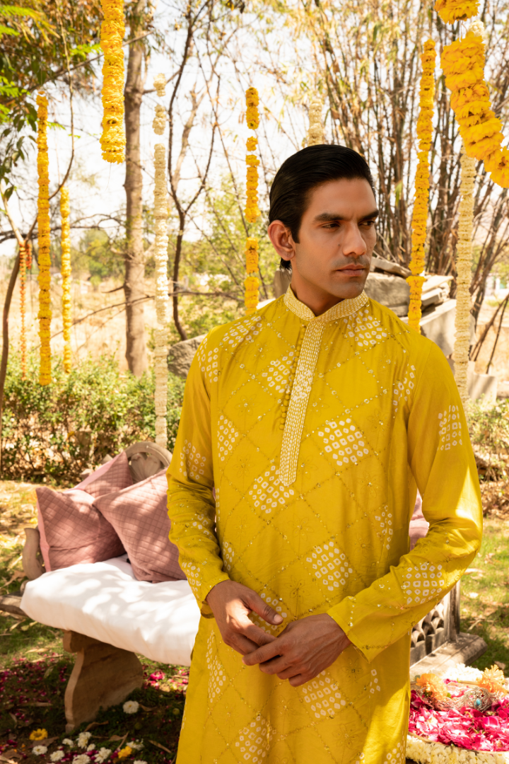 Experience the perfect fusion of rustic charm and artisanal craft with this granola checks batik kurta. The earthy, warm tones are enhanced by a subtle check pattern, while the traditional batik dyeing process adds depth and character to the design, resulting in a truly unique and eye-catching garment.