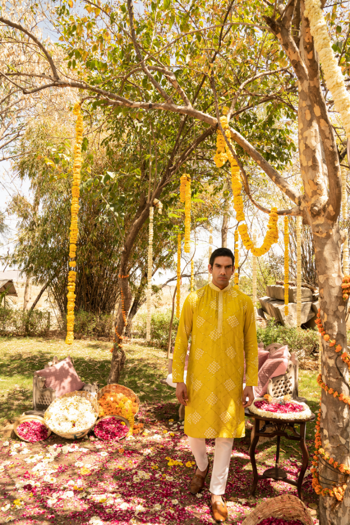 While our artisans and tailors work tirelessly to construct each piece, the ones with beads and sequins are always the most difficult. Even with the utmost care, beads and sequins have a tendency to fall off the fabric. A few beads or sequins missing have no effect on the overall appearance of the outfit and are unnoticeable even under close inspection. So don't be afraid to shine!