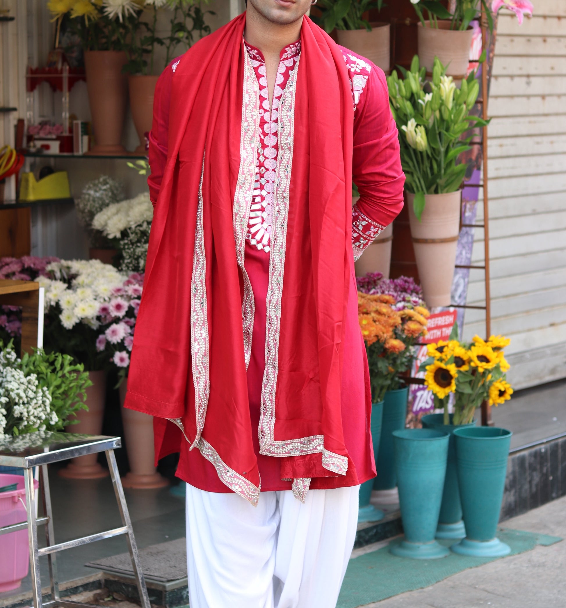 Perfect for Special Occasions: Ideal for weddings, festive celebrations, and cultural events, the Scarlet Red Mirror Kurta with Dupatta ensures you leave a lasting impression.