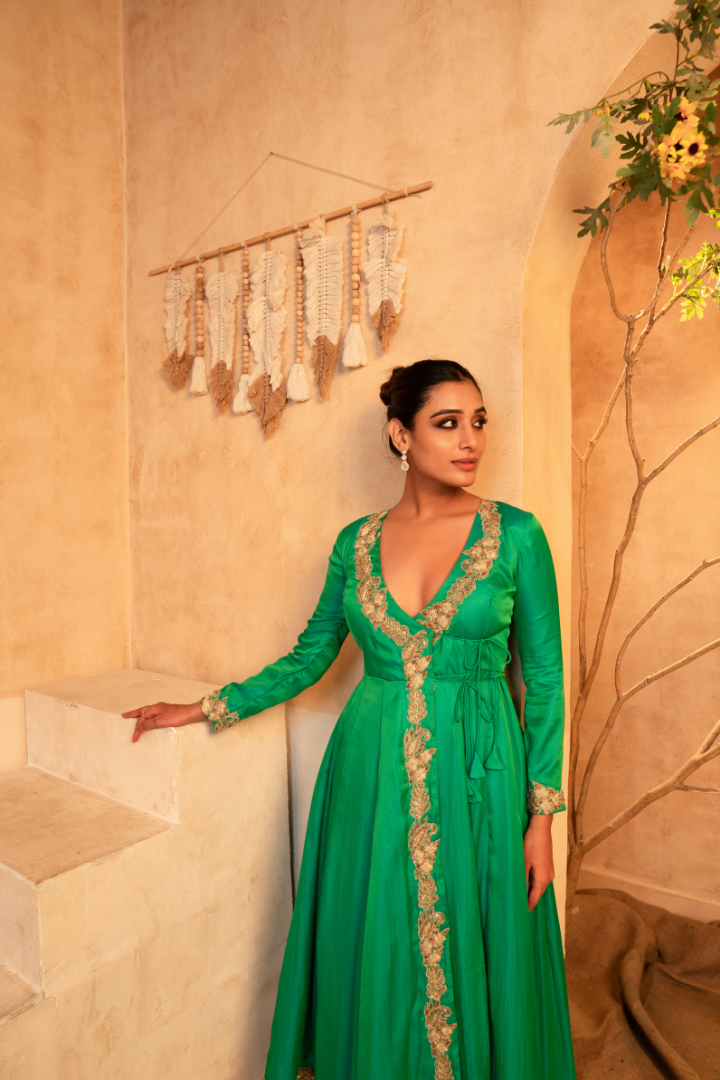 Embrace the refined charm of the Tammanna - Dehleez Tunic. Crafted from the finest silk fabric, this stunning ensemble features a captivating design that radiates a sense of timeless sophistication. The flowing tunic silhouette creates a mesmerizing look that effortlessly transitions from day to night. Whether you're attending a formal event or elevating your everyday style, this Tammanna creation is a versatile choice that will make you feel truly confident and poised.